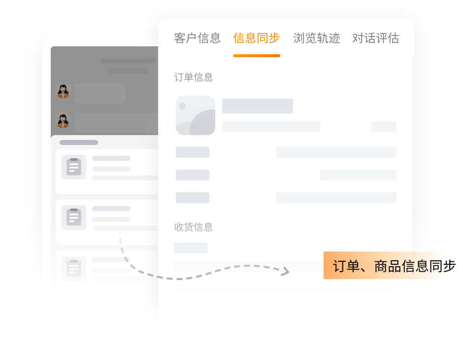 Live800为新时代健康自有商城,打破订单数据、商品数据孤岛,在对话中为客服同步客户的订单及商品信息,提升沟通效率,促进在线销售,助力订单转化。