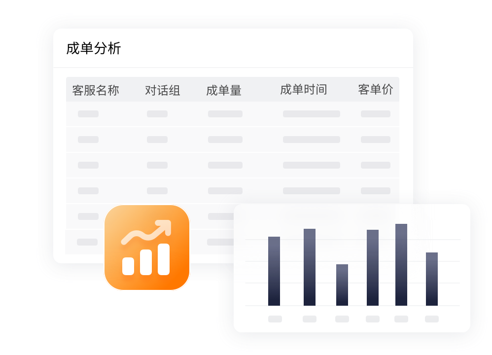 Live800打通订单系统、商品系统,使品牌客服在服务过程中可同步查看客户购物车中产品信息及客户下单支付情况,便于在线促单转化。同时Live800提供多种算法自动匹配促单客服,并同步记录各促单客服成单量、客单价等数据,为客服业绩考核提供基础,助力企业打造优质客服团队。
